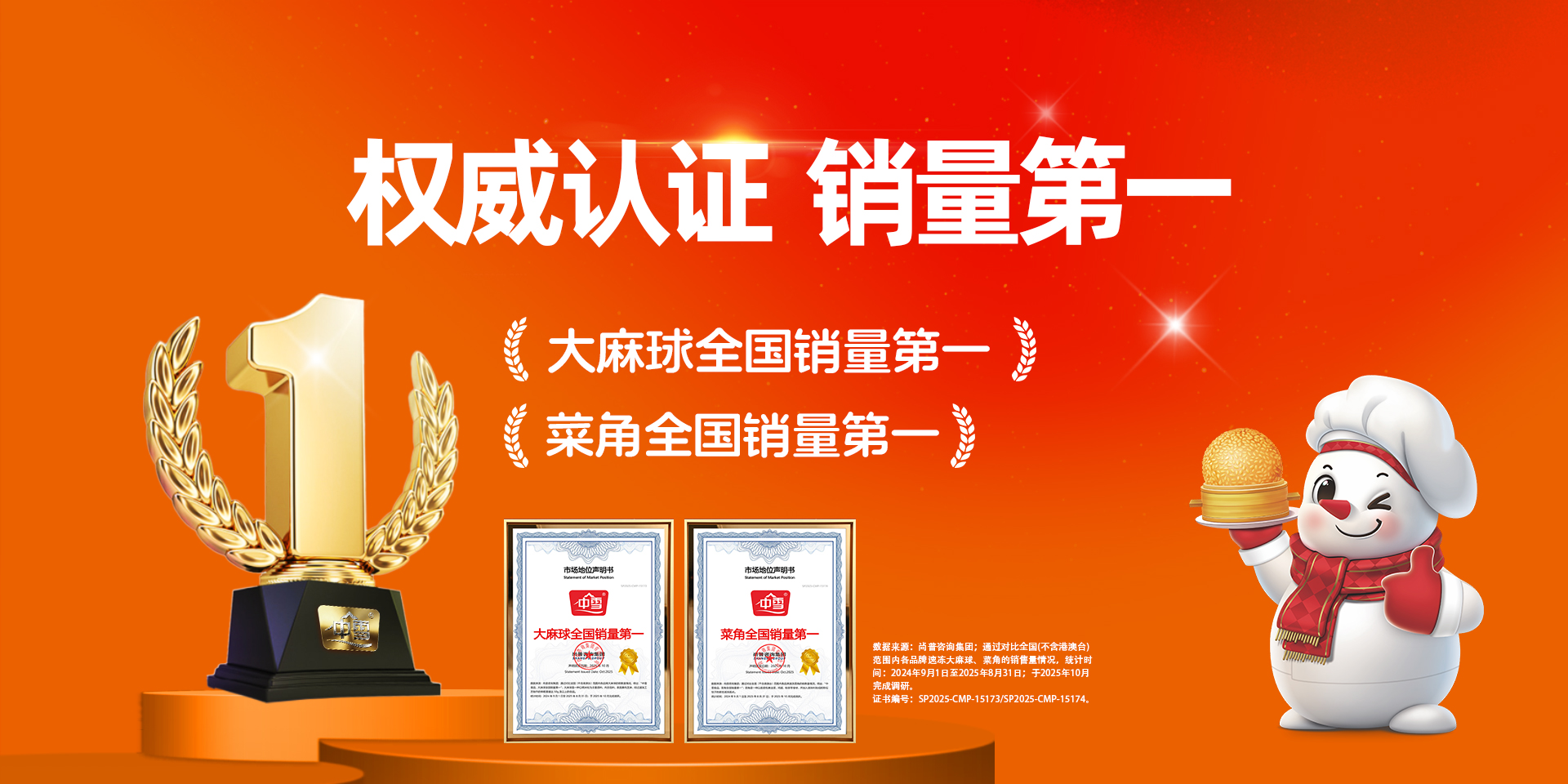 重磅喜報(bào) | 中雪食品實(shí)力斬獲大麻球、菜角“全國銷量第 一 ”認(rèn)證!
