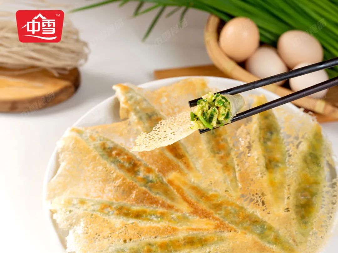 中雪60%的高餡含量,帶來了與傳統(tǒng)鍋貼截然不同的體驗(yàn)。咬開時(shí)能感受到餡料的飽滿充盈,韭菜的脆嫩與雞蛋的綿密層次分明,牛肉餡則清爽不膩,全無 “皮多肉少” 的空洞感。這種 “每口都有餡” 的扎實(shí)體驗(yàn),讓消費(fèi)者直觀感受到差異——不再是被面皮裹挾的零星餡料,而是餡料主導(dǎo)的豐富口感。